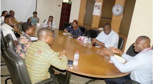 Franklin Sowah (right), Director, Marketing, GCGL, addressing Gideon T.Y Leckson-Leckey (left), Council Member- President of Planned Parenthood Association of Ghana and his delegation when they paid a visit to GCGL. Picture: ESTHER ADJORKOR ADJEI.